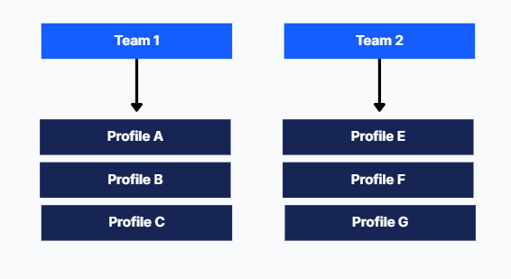Here is an example scenario for an AdLabs account with multiple teams managing several advertising profiles.