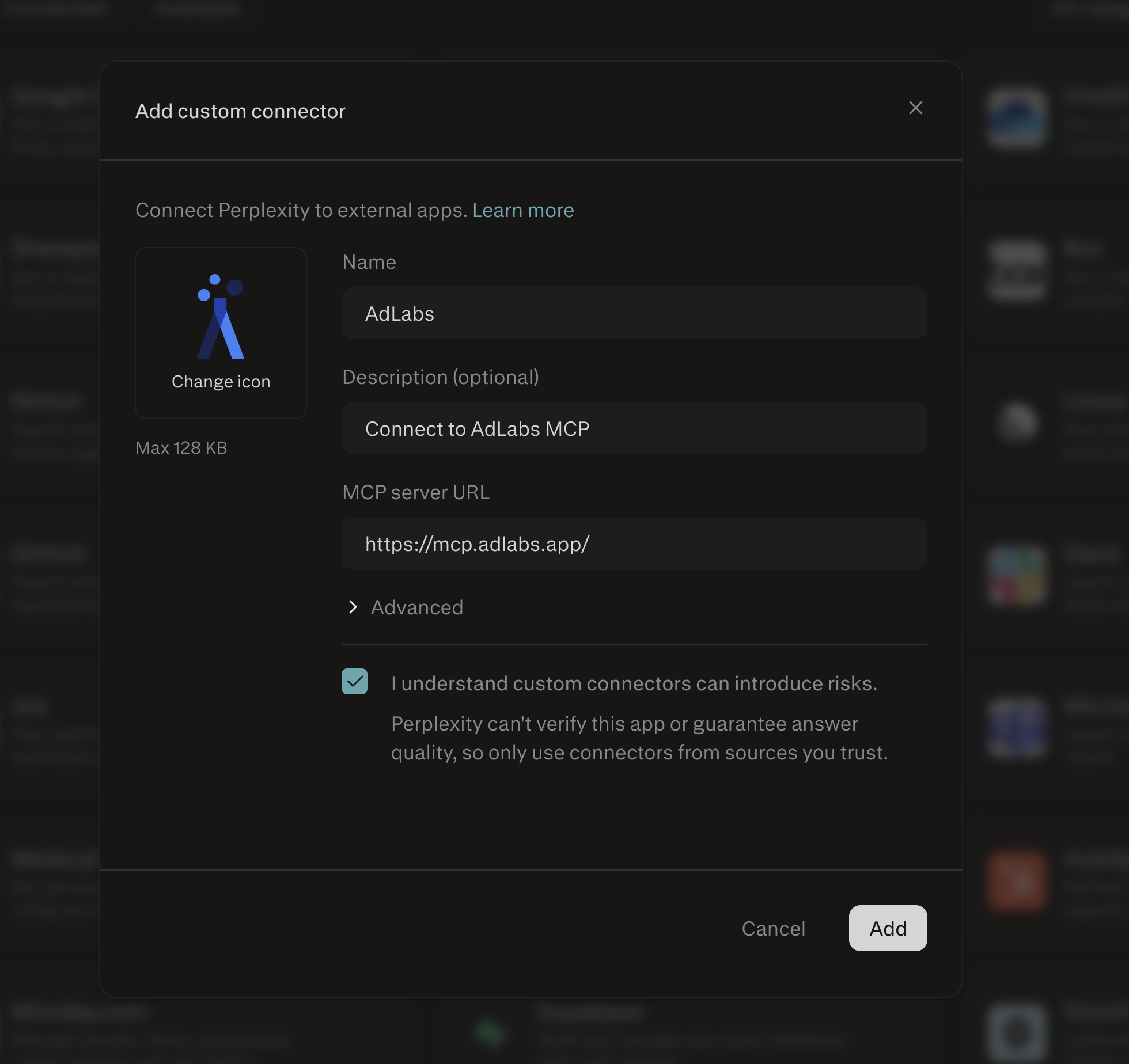That’s it! Now you can query your AdLabs data from within Perplexity.