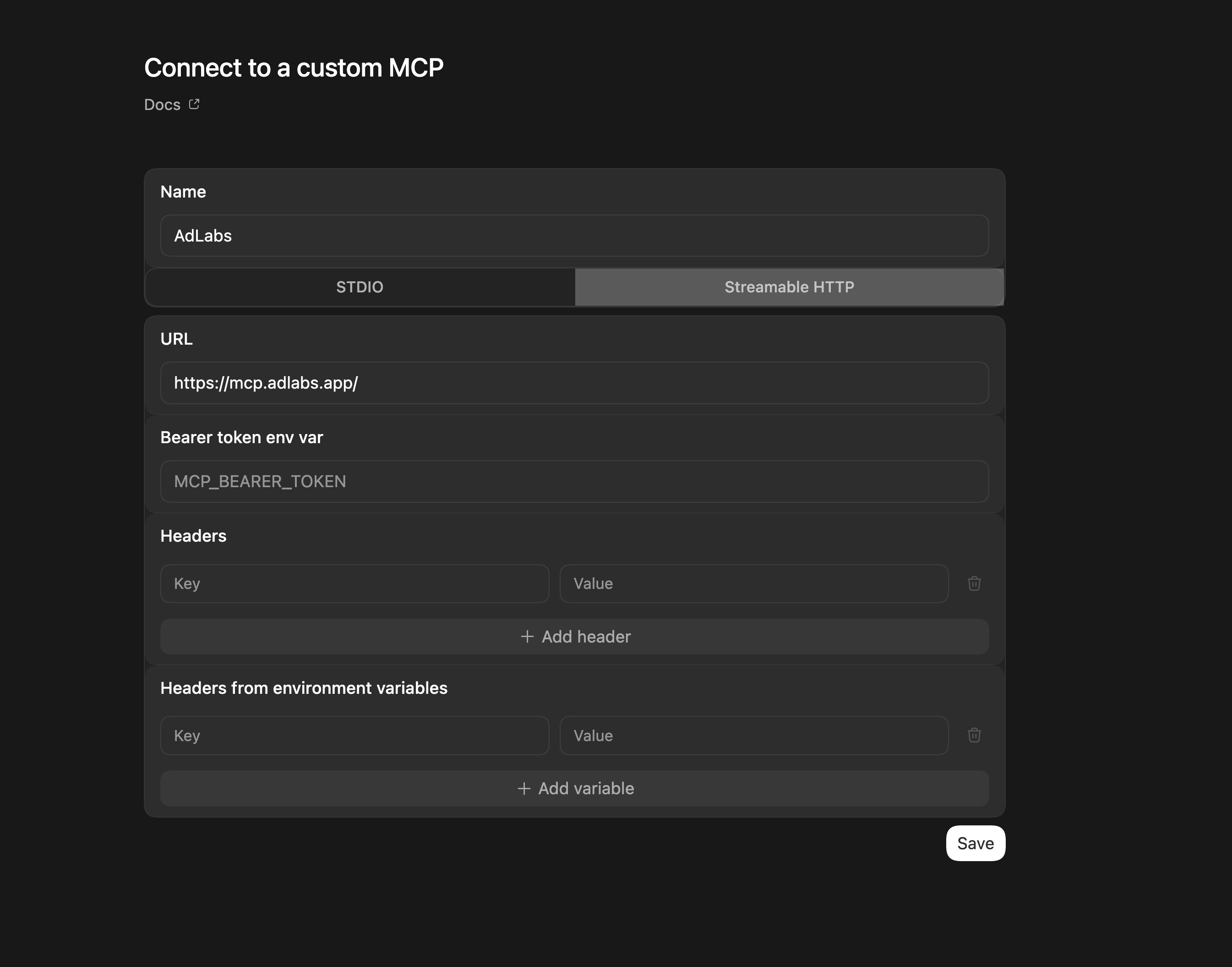 That’s it! Now you can query your AdLabs data from within ChatGPT (Codex).